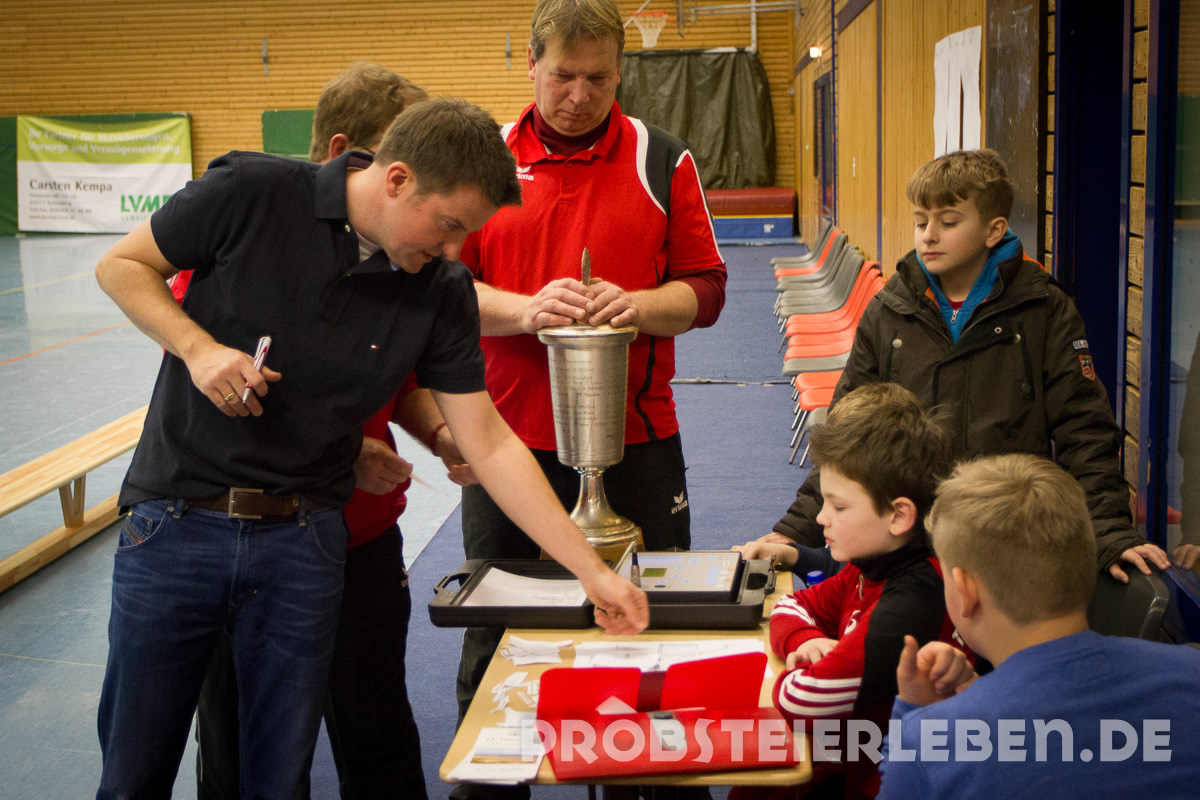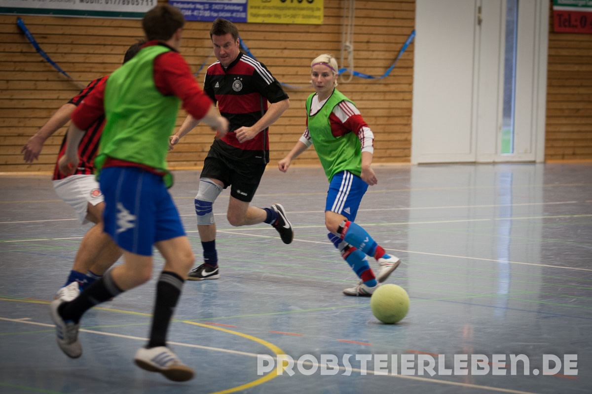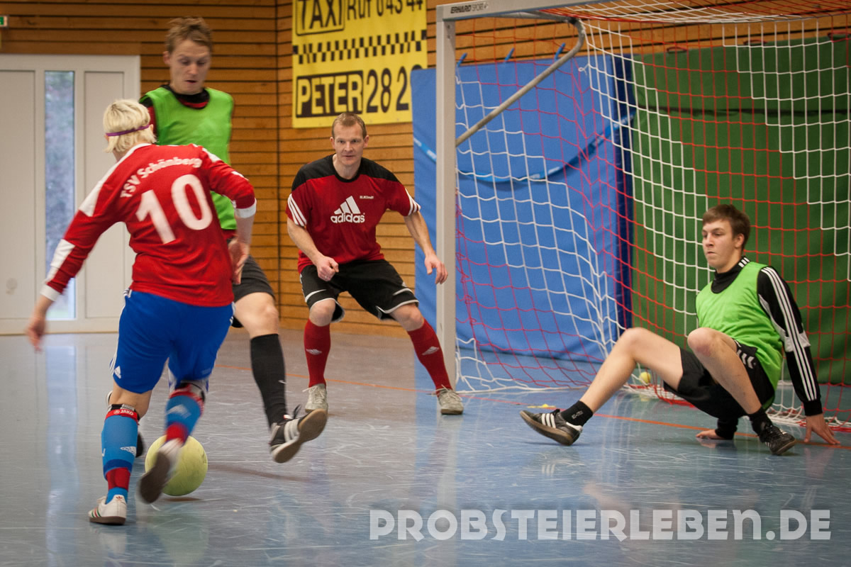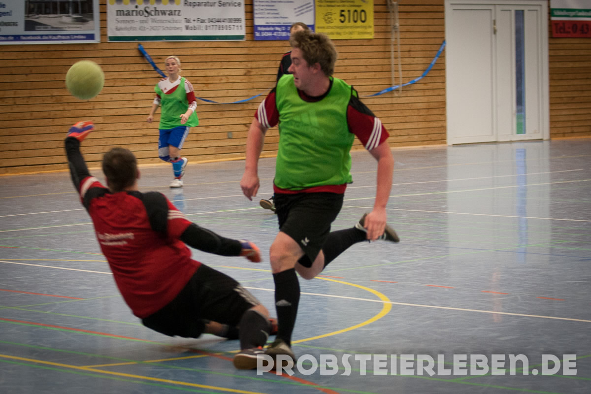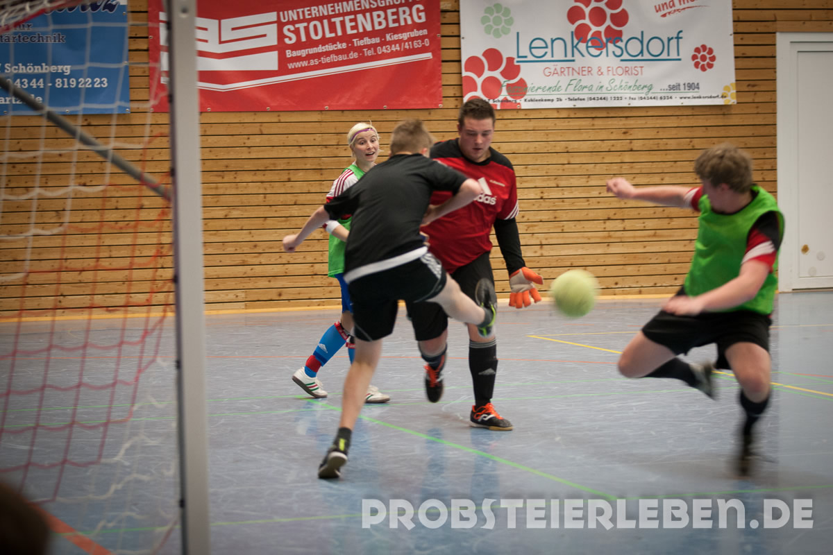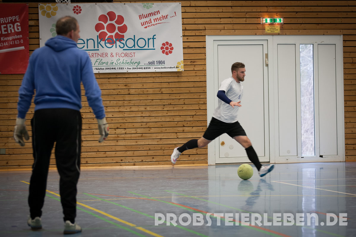 Nachdem es im letzten Jahr leider ausgefallen war, konnte Abteilungsleiter Uli Schröder in diesem Jahr 50 Teilnehmer in der Schönberger Halle begrüßen. Schnell waren die Gruppen ausgelost und die Zuschauer konnten sich über viele Tore und faire Spiele erfreuen.