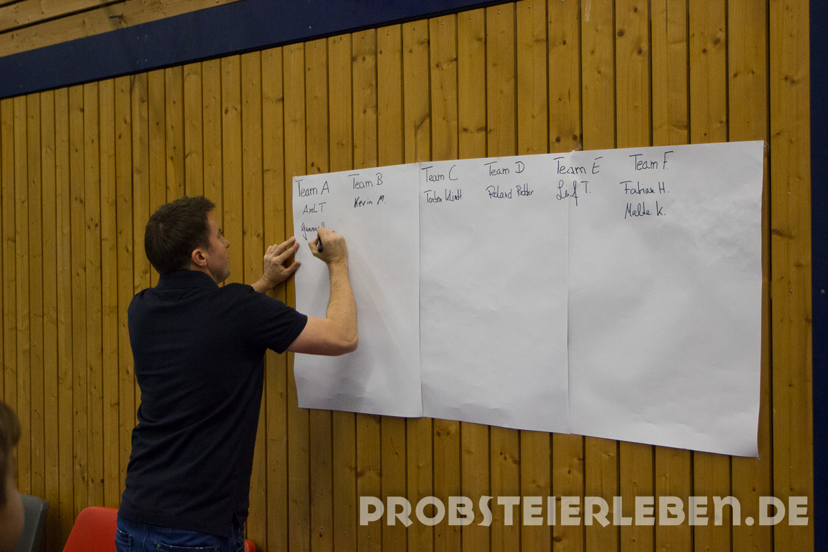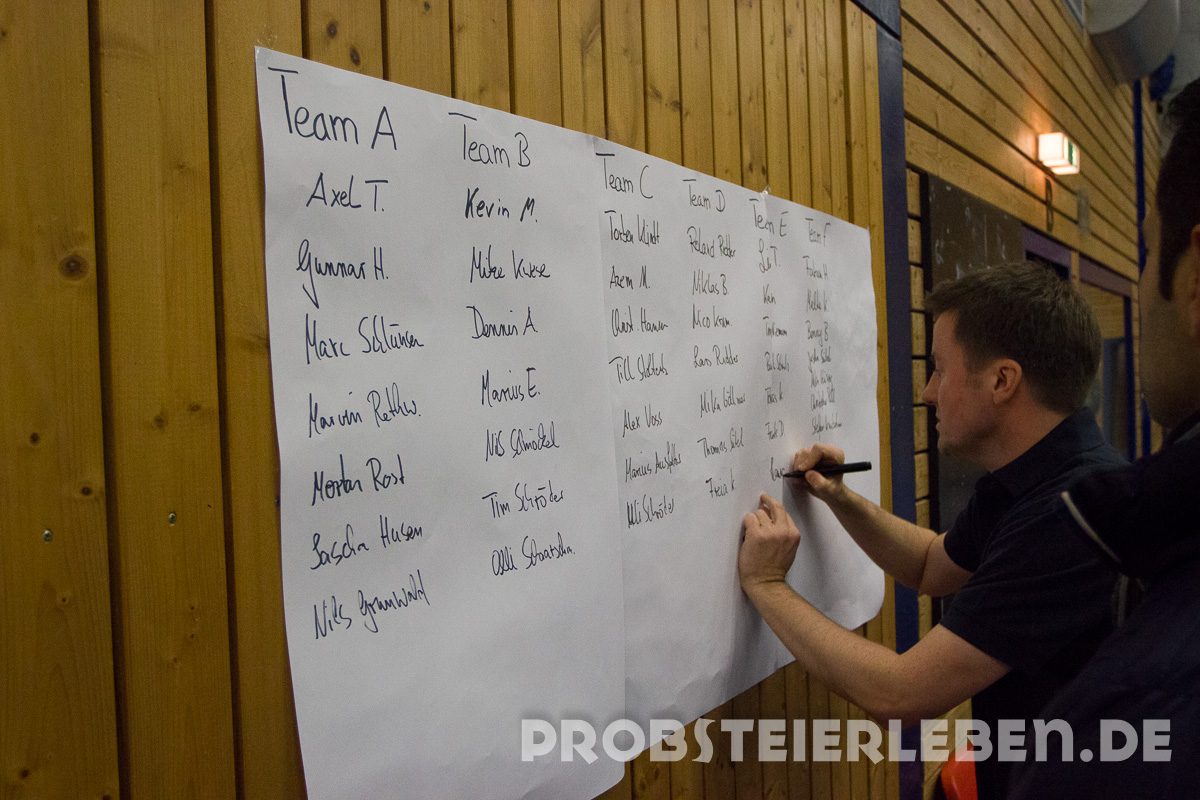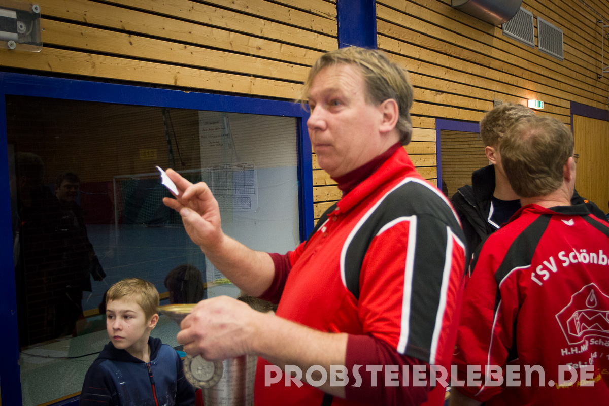 Zu Turnierbeginn wurden die Mannschaften öffentlich durch den Turnier- und Abteilungsleiter Fußball des TSV Schönberg, Uli Schröder und seinem Orga-Team, unter den interessierten Augen der Mitspieler, ausgelost.