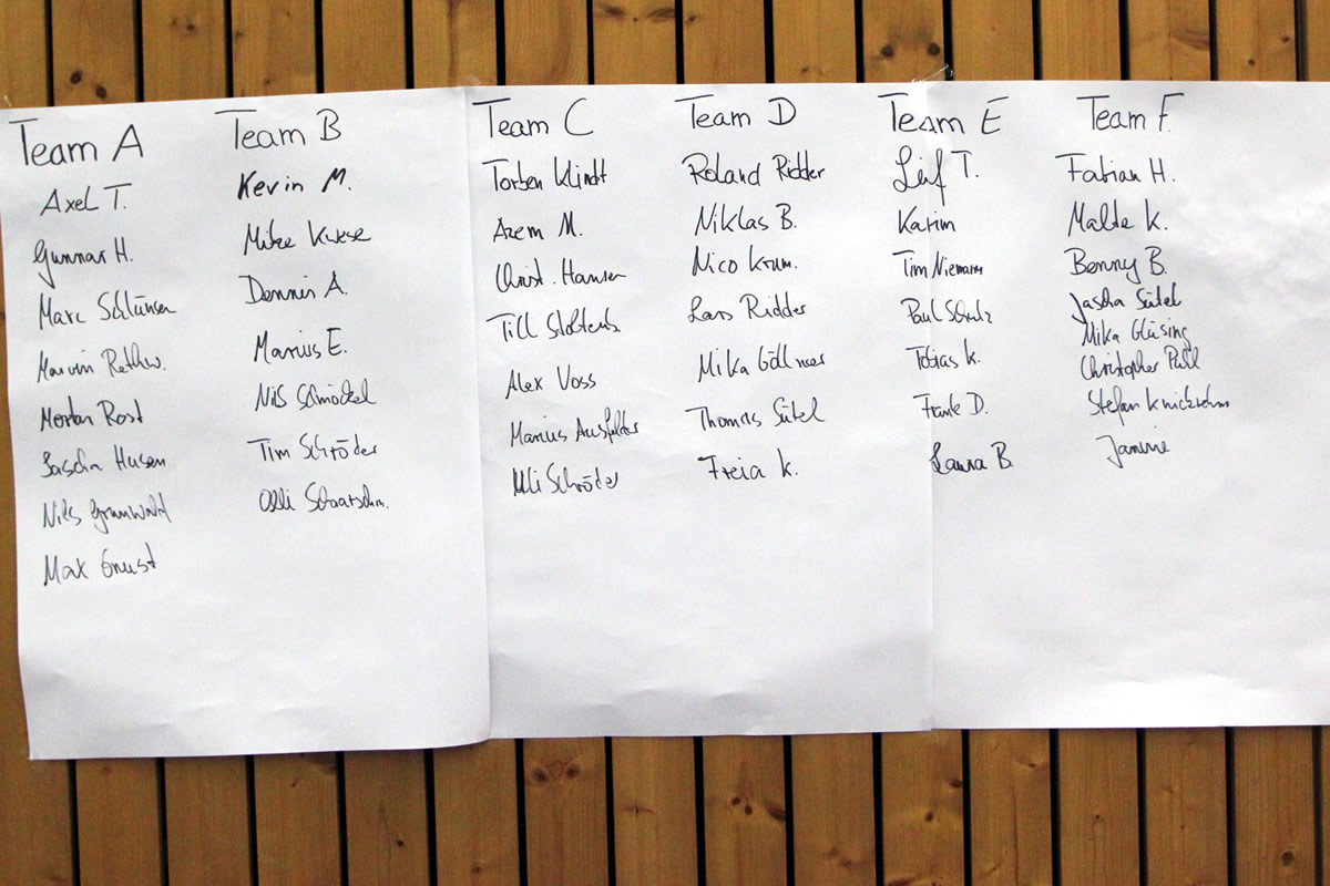 Letztendlich wurden 6 Mannschaften mit jeweils 7 bzw. 8 Spielern - unter Ihnen auch Spieler aus der A-Jugend und sogar 3 Frauen aus der 1. Frauenmannschaft - gebildet.
