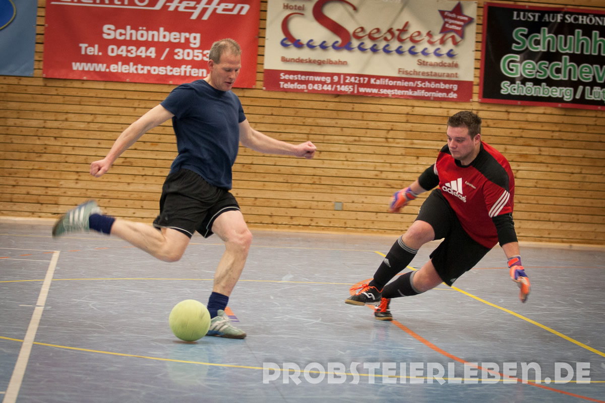 Nachdem es im letzten Jahr leider ausgefallen war, konnte Abteilungsleiter Uli Schröder in diesem Jahr 50 Teilnehmer in der Schönberger Halle begrüßen. Schnell waren die Gruppen ausgelost und die Zuschauer konnten sich über viele Tore und faire Spiele erfreuen.